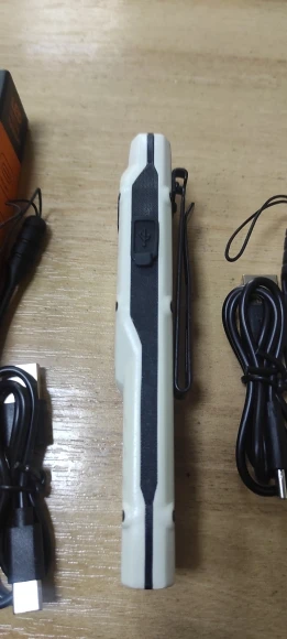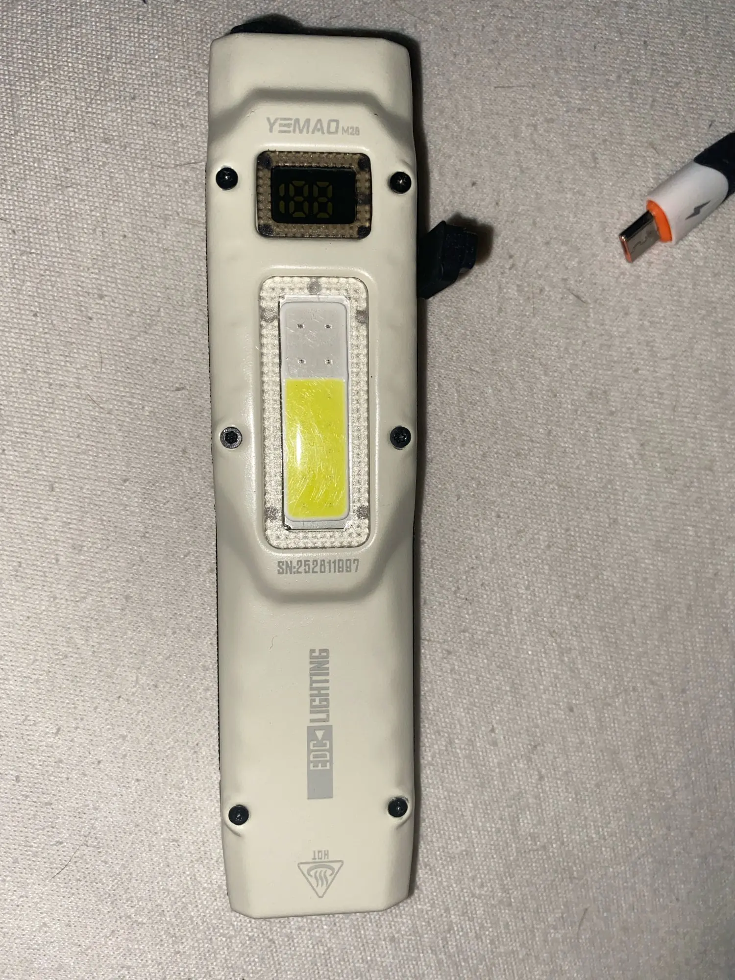 It is a flashlight in the new flat format that is trendy now. Very nice ivory color. The warm light is floodlight and the white one is more spotlight or standard. It's curious that the warm light pattern is not circular, it's rectangular. The pattern of the white one is circular and it is a pure white tone without any blue or greenish tints. The charging indicator light illuminates a small room in the dark. 😂 😂 but it could turn off because it surely also consumes battery.